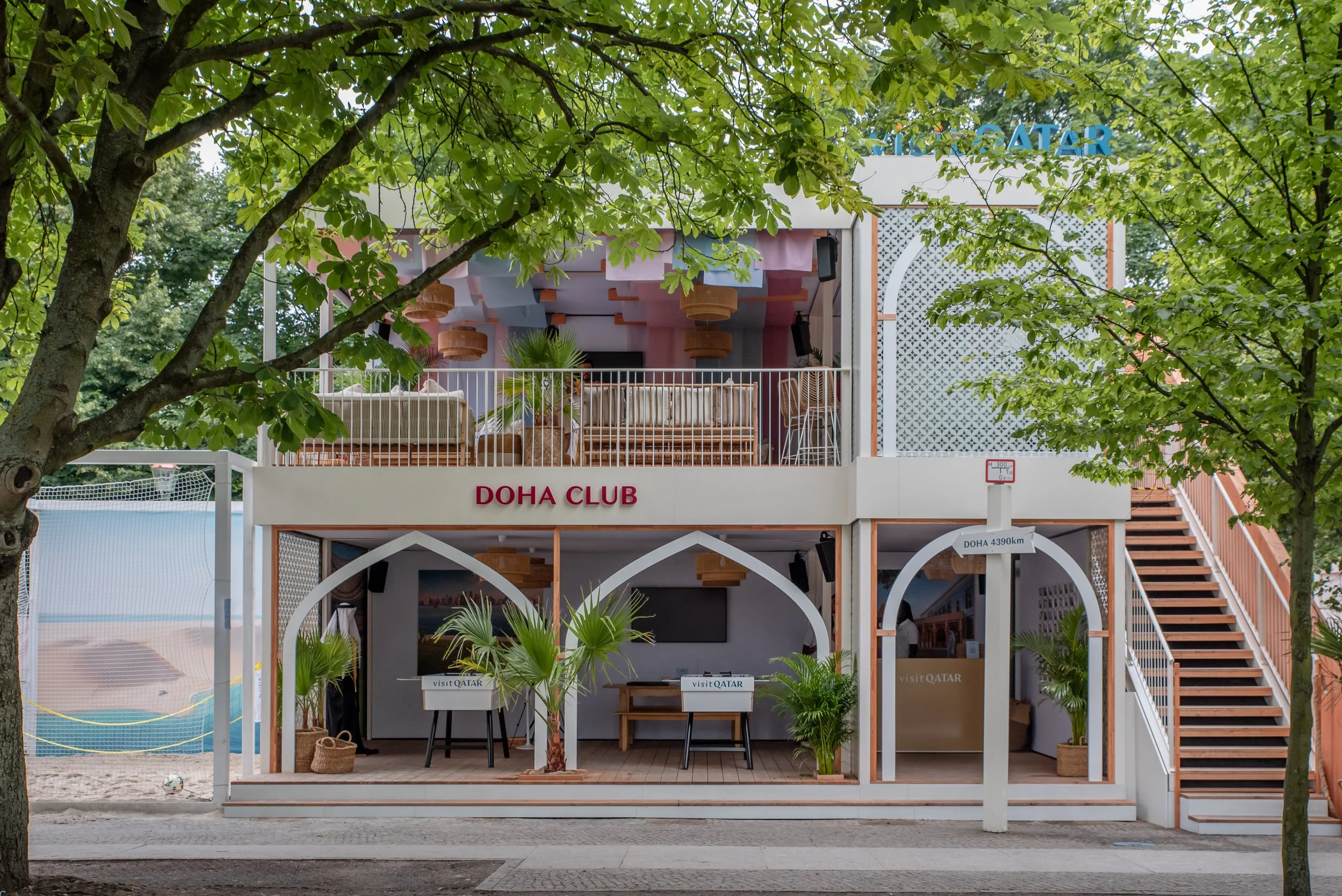 The top floor offered calm away from the crowds and the opportunity to experience the world-famous Qatari hospitality, with Arabic coffee, local delicacies and soundscapes. Every detail was considered and tracked from a sustainability standpoint, from materials to catering to transport.